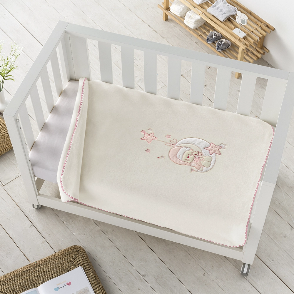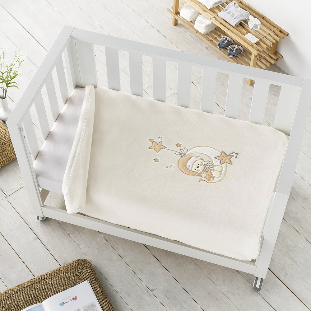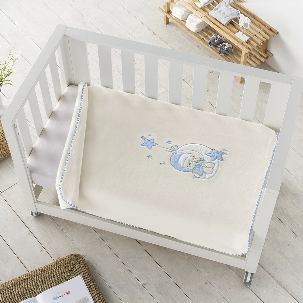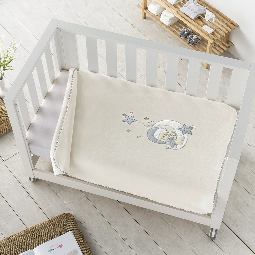 Enhance your baby’s sleep with our Bear blanket. Carefully crafted from 85% acrylic and 15% polyester, it provides a sanctuary of warmth and comfort while the detailed embroidery adds charm for cozy nights.