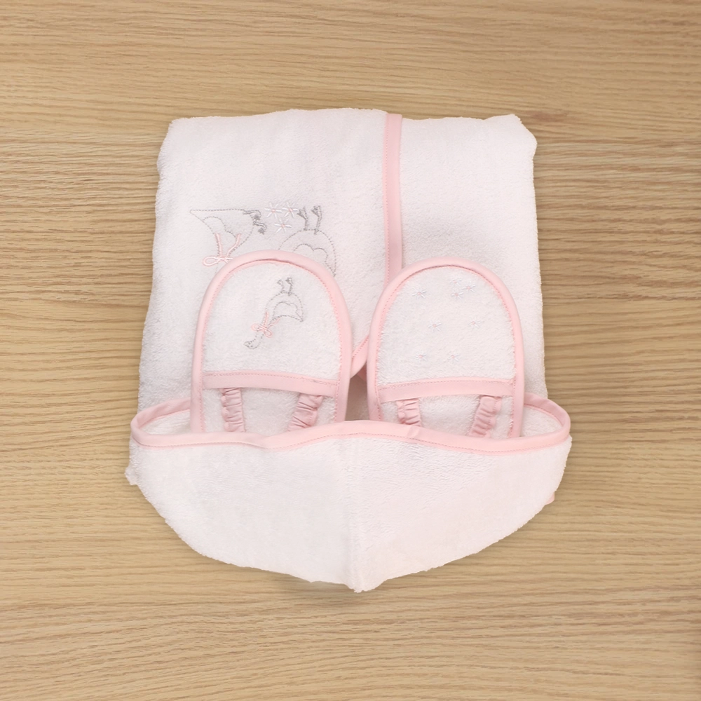 Provide your little one with the ideal post-bath comfort using our Bathrobe & Slipper Set. Made from soft cotton, it tenderly cares for their sensitive skin while its absorbent qualities keep them dry and cozy after every bath.
