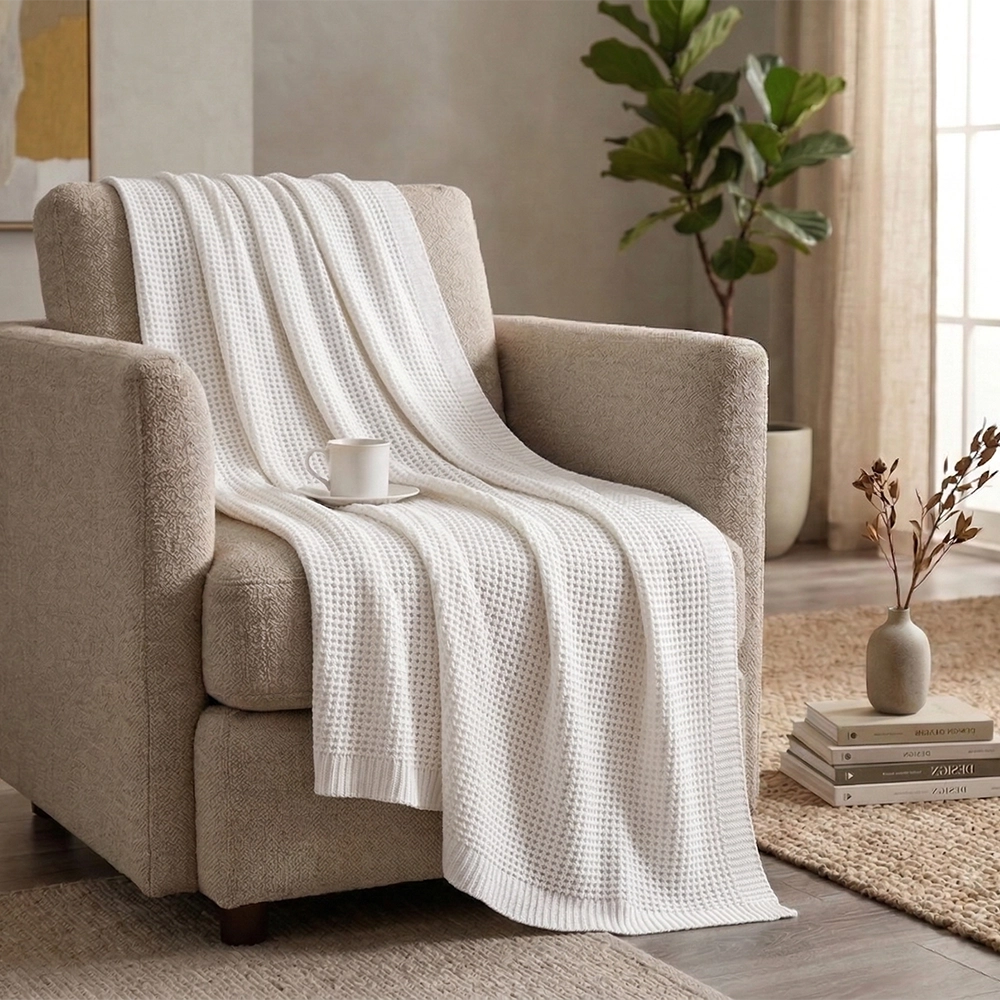 This throw provides an effortless blend of elegance and sustainability. It’s ideal for cozy evenings or as a stylish addition to any room.