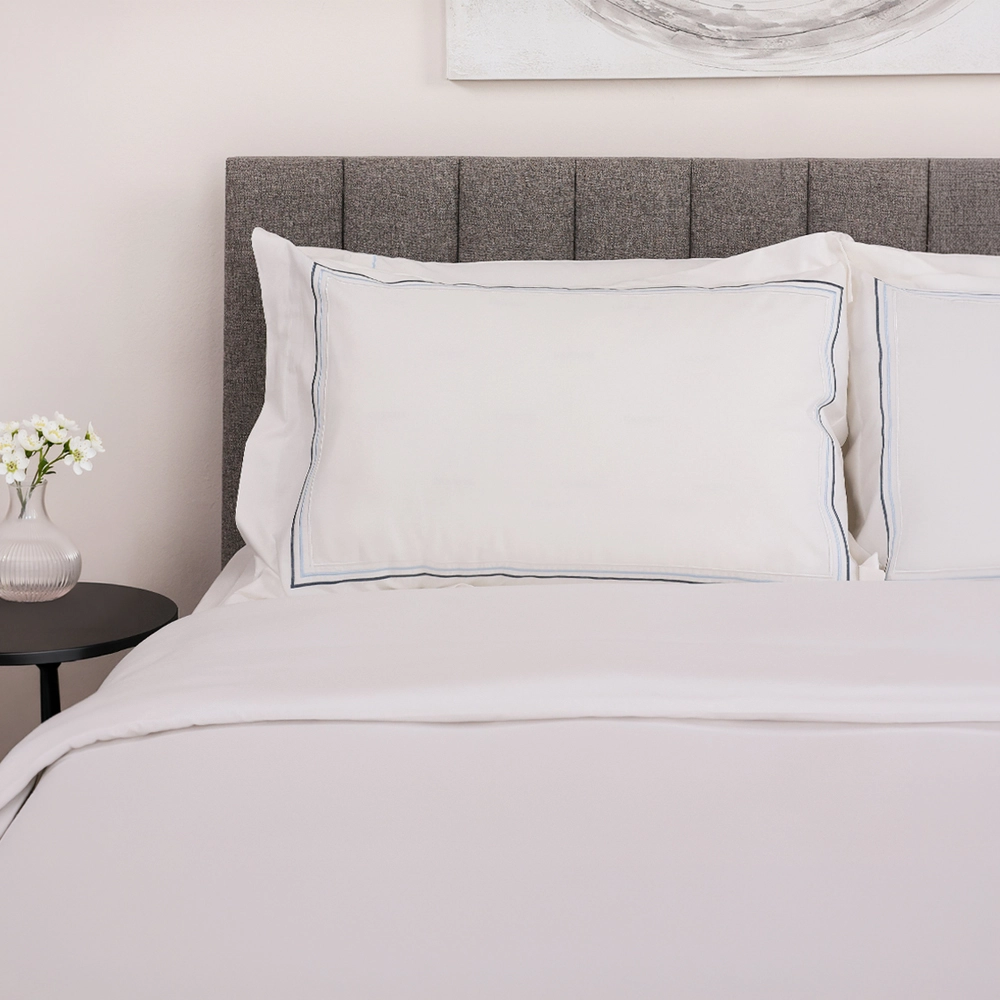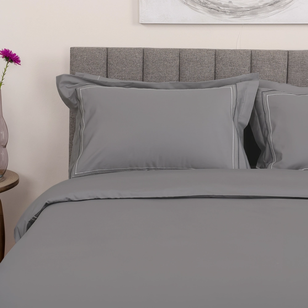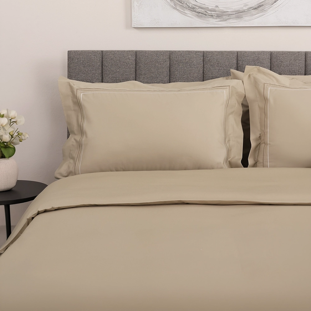 Lines Embroidery Cotton Sateen 330 Thread Count Duvet Cover Set